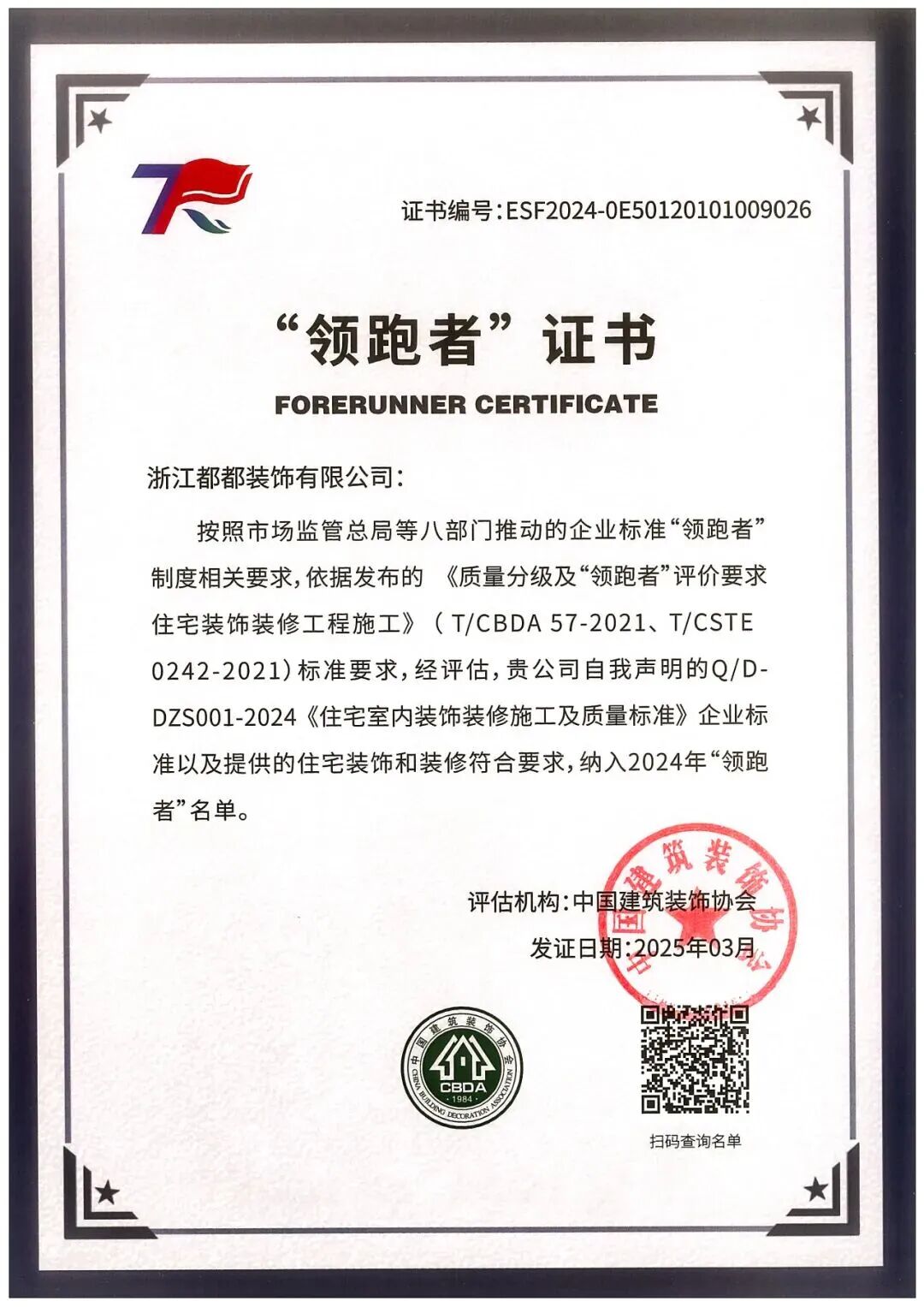 家装行业企业标准“领跑者”