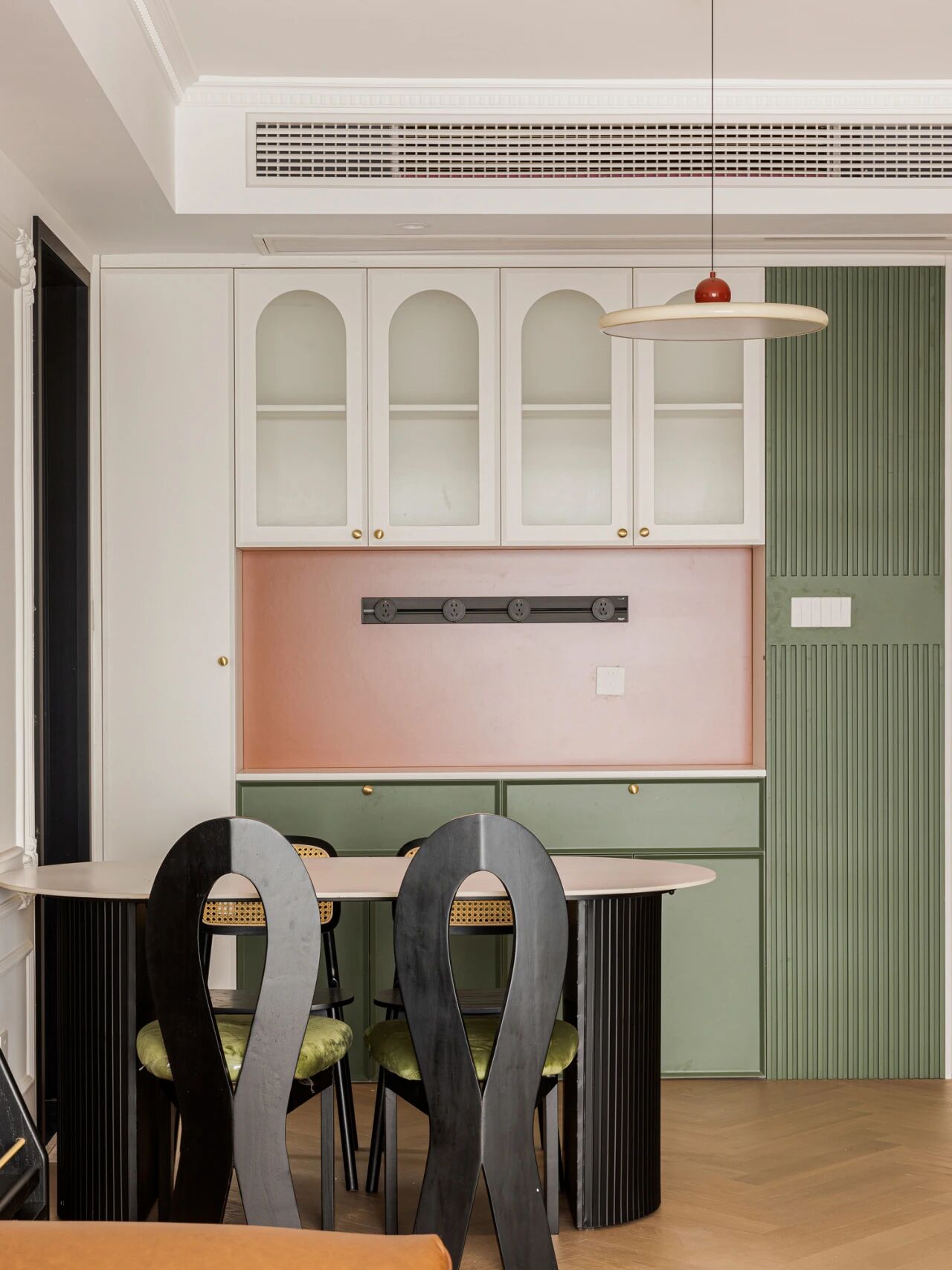 还可以在这个位置做一排可移动式插排,一些小家电比如净水机、空气炸锅、早餐机也都可以在这里使用。
