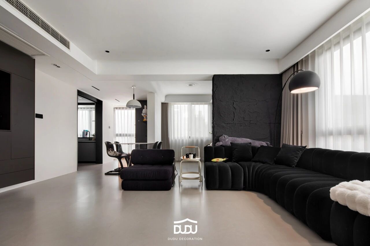 同时搭配深泽质感的胡桃木或烟熏橡木,自然流动纹理的大理石,哑光质地的黄铜或黑钛金属,小面积的黑曜石点缀……